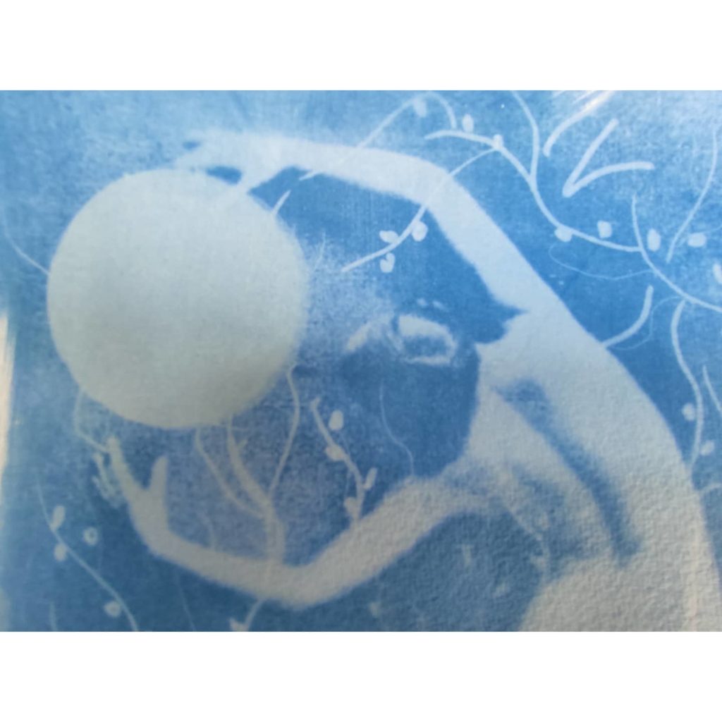 Un cyanotype en quête de révélation par temps nuageux sur une table. Le bleu est trop clair, turquoise pâle. Le soleil se cache, le temps de pose sera plus long. Un autre retenu par une pince à linge, sèche mollement au vent. A l’ombre d’un figuier, l’image bleu indigo d’un amoureux se balance. Le bleu parfait existe-t-il ?