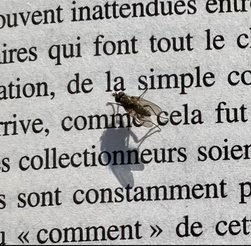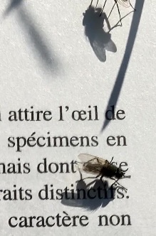 Que nous disent les mouches aujourd’hui, attirées par la blancheur lumineuse de la page, tandis que mes yeux cheminent par les sombres caractères en quête d’éclairage ? Il n’y a qu’une saison où parlent les mouches. Elles ont de la conversation au plein du printemps. Elles se rassemblent, partent et reviennent, se posent et décollent. Elles sont les obturateurs.
