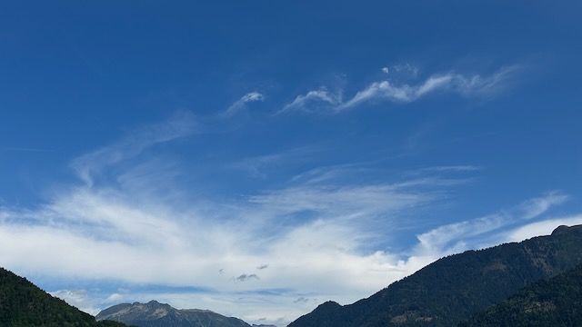 Dans les coins de montagnes, nuages en piles d’assiettes posées sur le sommet comme l’image d’un tour dignes des équilibristes qu’on voyait dans les foires autant du noir et blancs avec des bords frangés et des teintes sépias