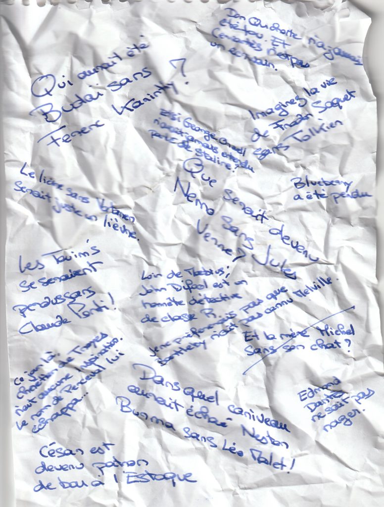 Ah voilà l’inconnu, le personnage, le héros du livre, celui qui n’existe pas encore…