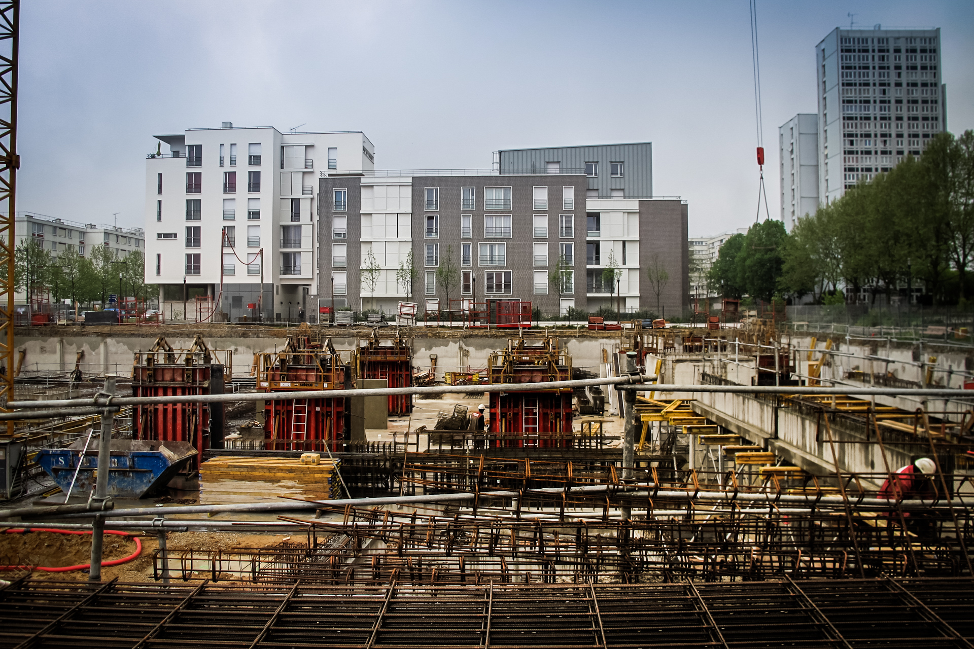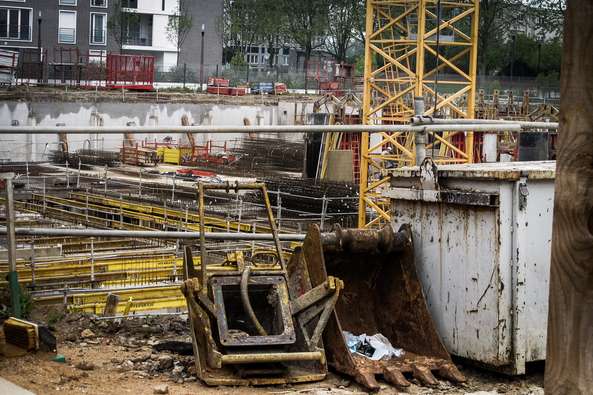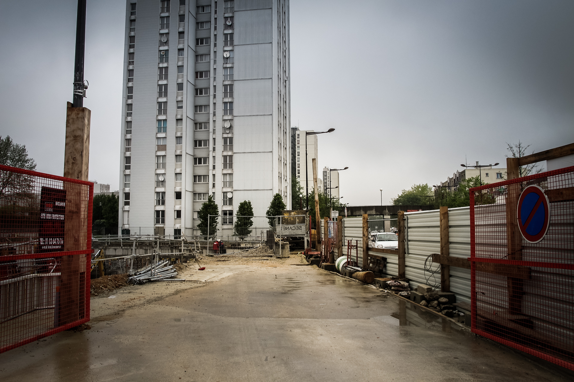 Je suis sur un 25 000 signes pas facile, qui me prend beaucoup plus de temps que prévu. Mais je m’attelle : je n’avais pas eu d’hésitation à répondre à la commande, ça me ramenait sur le plateau de Saclay tellement arpenté tout l’hiver et printemps 2012 pour la résidence S-Cube et tant de rencontres qui restent aujourd’hui ancrées profond et à vif dans mon paysage du dedans. Reste qu’un texte il faut le conduire, et des fois ça glisse, ça patine. Il faut y ancrer des intensités, lâcher de soi alors que ce n’est pas un contexte qui y autorise tant que ça. Bon, c’est mes oignons, sauf que maintenant le délai chauffe rouge. Alors je me balade une fois de plus, comme souvent ces temps-ci, en jouant sur les boutons de Lightroom et en modifiant les infinies grilles de petites icônes d’affichage. J’aperçois une zone plus abstraite, certainement un chantier, il y a une grue, mais j’ai toujours photographié les chantiers. La seule chose qui me revienne c’est d’être sorti d’une gare RER pour rejoindre un rendez-vous, que c’était un matin gris comme aujourd’hui, et qu’en longeant ce chantier j’avais shooté. Les métadonnées m’informent que c’est la période avec le petit Canon G12 (les poussières de Fos auront raison de lui un peu plus tard), avec quand même une sortie à 3648 x 2432 pixels — est-ce que c’est lié à ce qui me gêne depuis ces quelques semaines avec les photos d’archive, j’aurais toujours envie de recadrer un petit chouïe mais ça ne rend pas : plutôt que je photographiais à hauteur d’oeil et maintenant plus jamais, plutôt niveau ventre. Mais impossible de situer : grande couronne parisienne certainement, mais où quand. J’affiche uniquement la série faite ce jour-là, retrouve les photos du chantier et défile vers les suivantes. Je vois un « cinéma Jacques Prévert », bon, déjà ça aidera à s’y repérer. Puis une médiathèque : mais elles se ressemblent tellement toutes les médiathèques de périphérie. Celle-ci se nomme François Mitterrand, mais alors je revois sur les photos le visage de Florian D., c’est bon, il n’y aura pas besoin de Google ni d’aller laborieusement remonter la date dans l’agenda du Mac : c’était les Ulis. Pile exactement où ça coinçait, mon texte. Sauf que maintenant, sept ans plus tard, doit bien être fini, ce chantier.