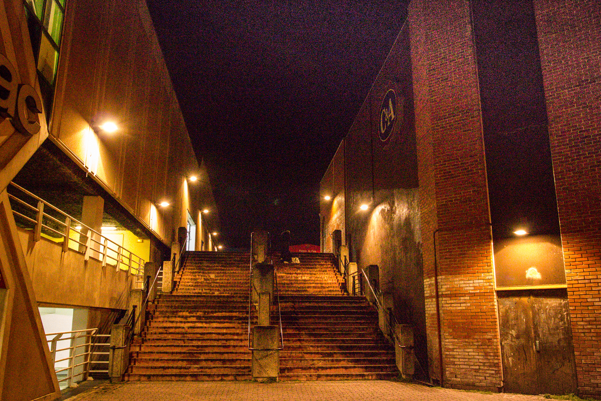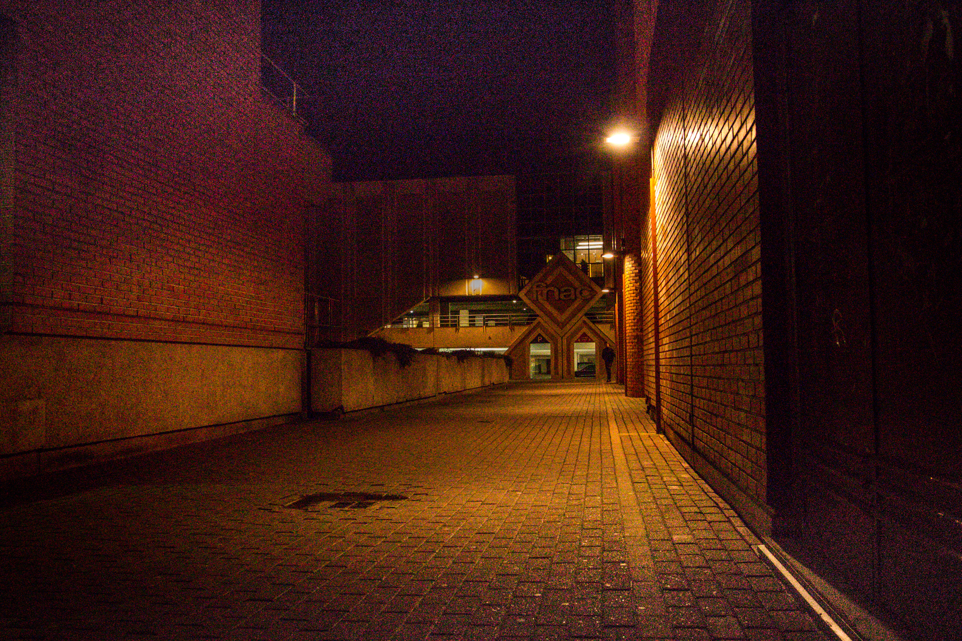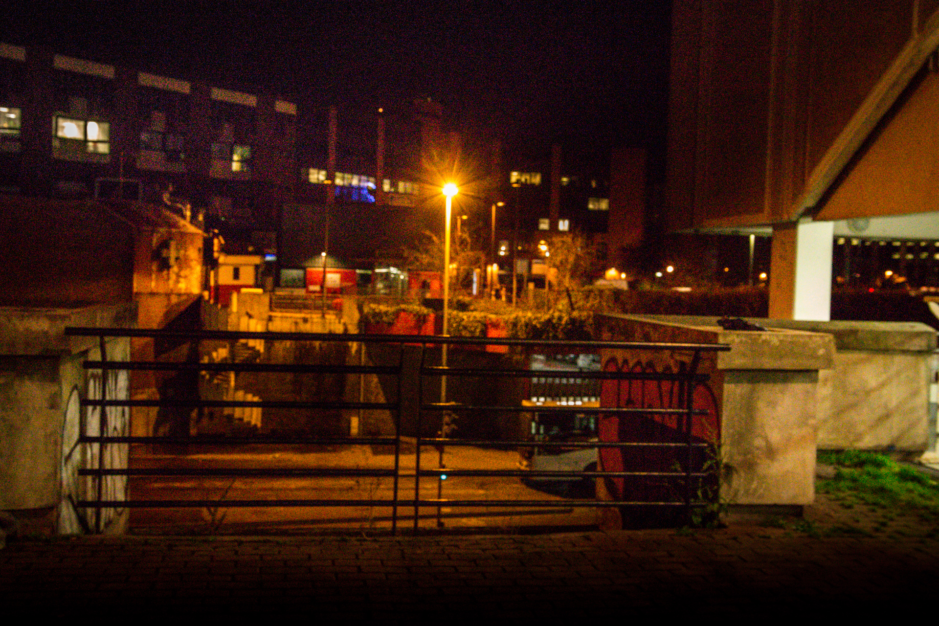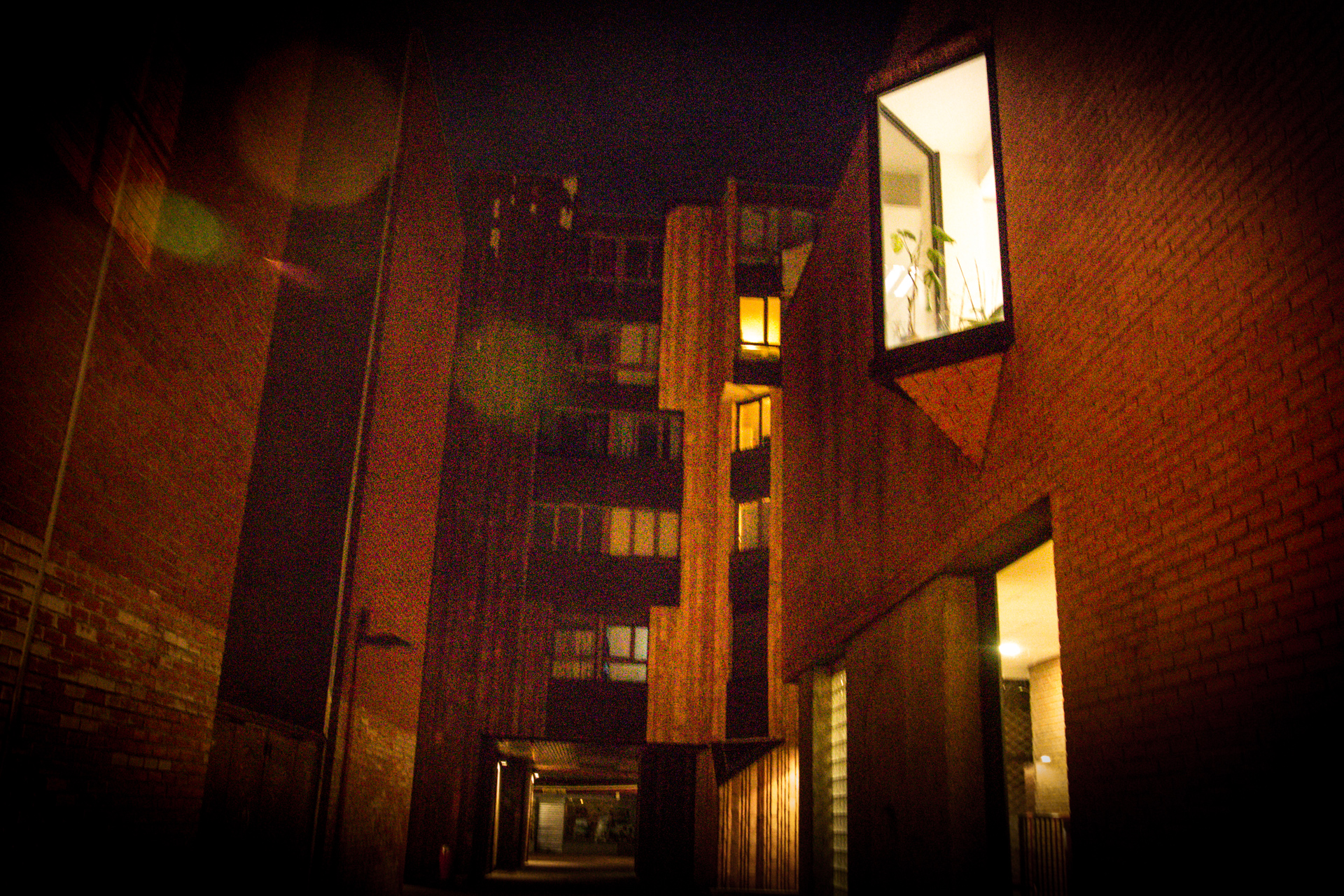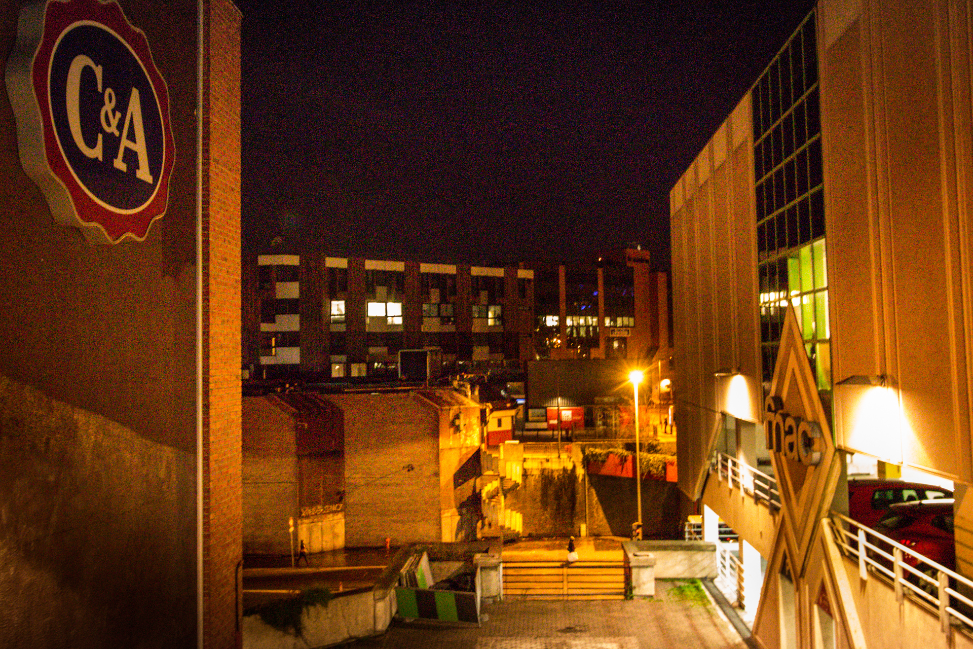 Non, je ne suis pas revenu à Cergy. Ça se fera peut-être, mais plus tard : ces communautés très structurées comme une école d’art sont aussi très confinées, elles se referment après départ et c’est très bien. Je me souviens de ce sentiment de clandestinité la première fois que j’étais revenu à la villa Médicis, « en étranger », et de toute façon ça ne manque pas. Changer de taf tous les cinq ans ça devrait être une sorte d’hygiène, on doit repartir dans les trappes noires pour avancer. Non, plutôt qu’un soir où je serais coincé à Paris et obligation raquer pour un hôtel, réserver là-bas au Formule 1 (ex Kyriad) où j’ai dû dormir un peu plus de 150 fois (moins, les derniers temps, y avait quand même lassitude) et se faire juste un shoot de nuit sur la vieille dalle — actuellement ils l’ébrèchent pour retrouver porosité, ces modèles de ville nouvelle se sont révélés obsolètes. Juste les lieux déjà photographiés 30 fois, mémoire des pieds, et bam bam bam. Par exemple, ouvrant cette série du printemps 2015, alors que j’avais déjà commencé les vidéos en chambre, mais avant la bascule qui suivrait en juillet, cette certitude que je n’avais pas fini avec ce coin précis de la ville, en tant que scénographie : lieu pour performer et capter. La fiction en cinéma est aussi morte qu’en roman, la fiction naît d’autres processus d’immersion dans le réel, à commencer par la main qui tient l’outil. D’ailleurs c’est ce qu’on va essayer de faire au C19 à Evry, à l’autre bout de la diagonale urbaine, ville jumelle, un peu moins décatie ? Sauf que là-bas faudra faire avec les dealers et cette violence à même la peau de la ville, tandis qu’à Cergy jamais eu d’emmerde. Ce que je cherche, à revisiter ces images (j’aurais tellement voulu qu’on aille plus loin, dans ces logiques urbaines, dans le cadre de l’école, mais c’est toujours des logiques d’effleurement et c’est normal : c’est dans le désespoir qui commence après diplôme qu’on lâche les monstres, je reste ami proche d’assez d’anciens élèves pour le savoir — notre boulot, c’est de préparer les pistes qu’ils auront à retrouver seul.e.s), ce n’est pas un enfoncement ni un retour, c’est le fil très étroit qui doit me servir de socle pour les chemins à reprendre. Bizarrerie à les rouvrir dans LightRoom : c’était fait avec mon SIgma 18-35 1.8 qui, lui, est resté sur place, revendu à un étudiant, alors que maintenant il devient genre culte, cet objectif.