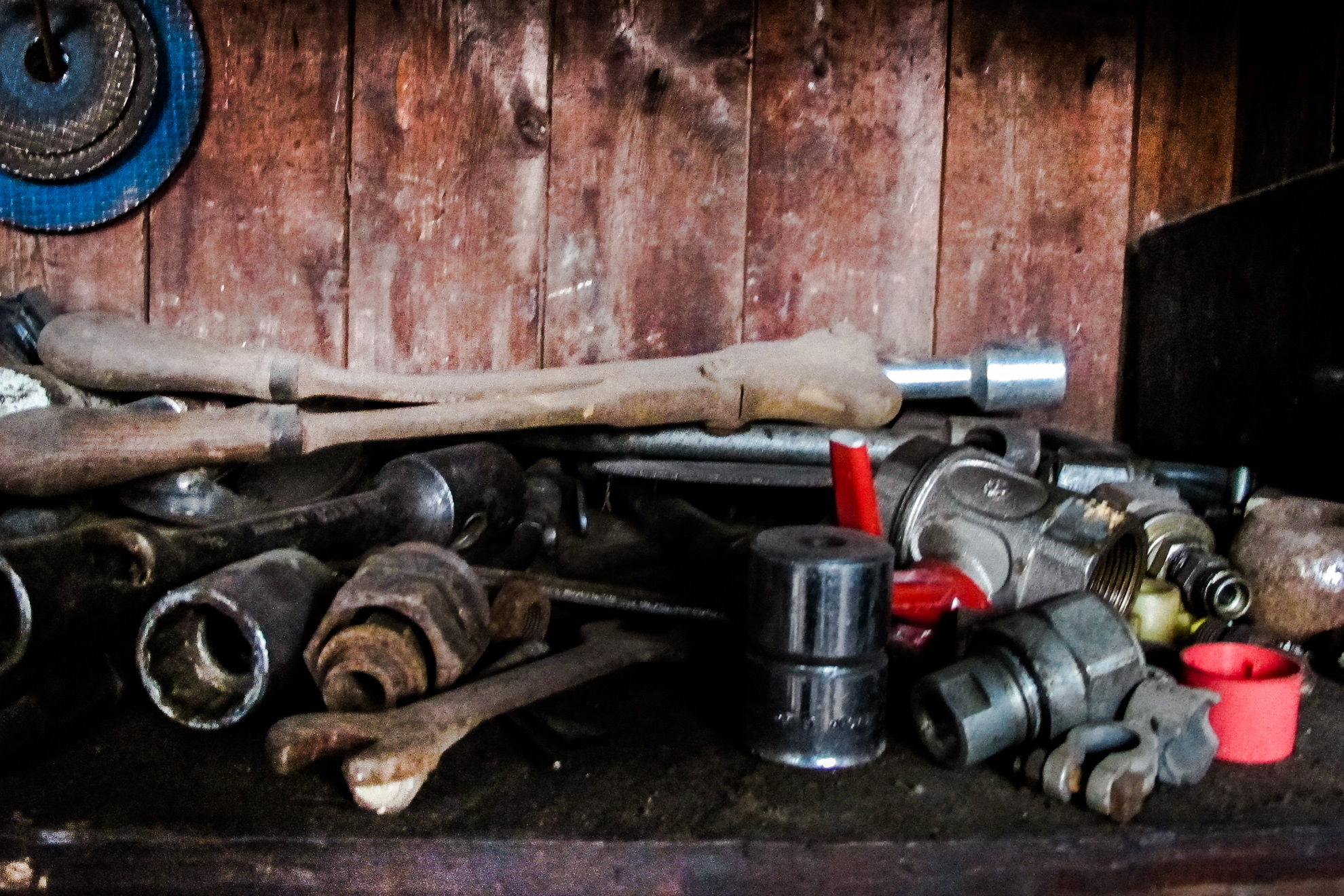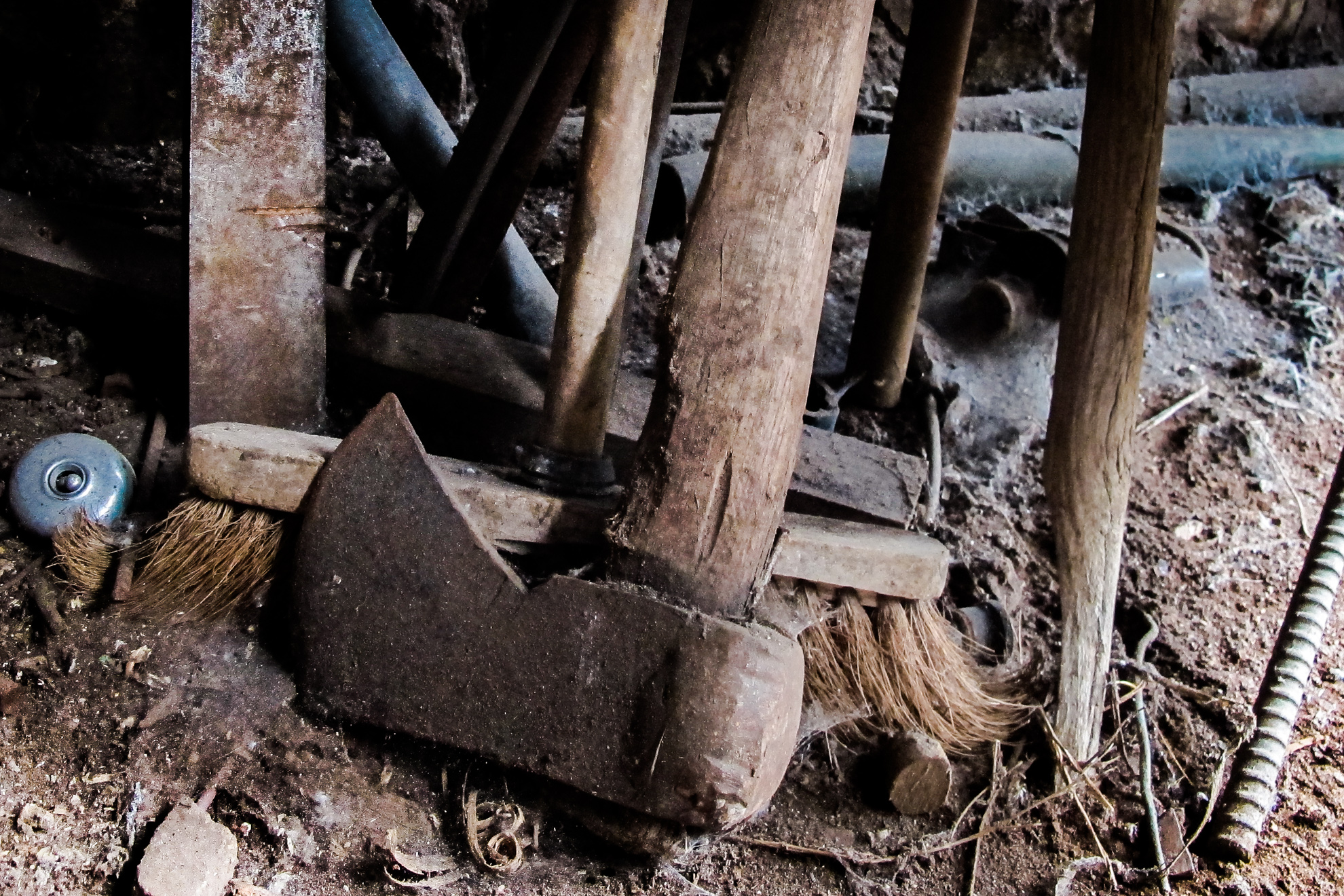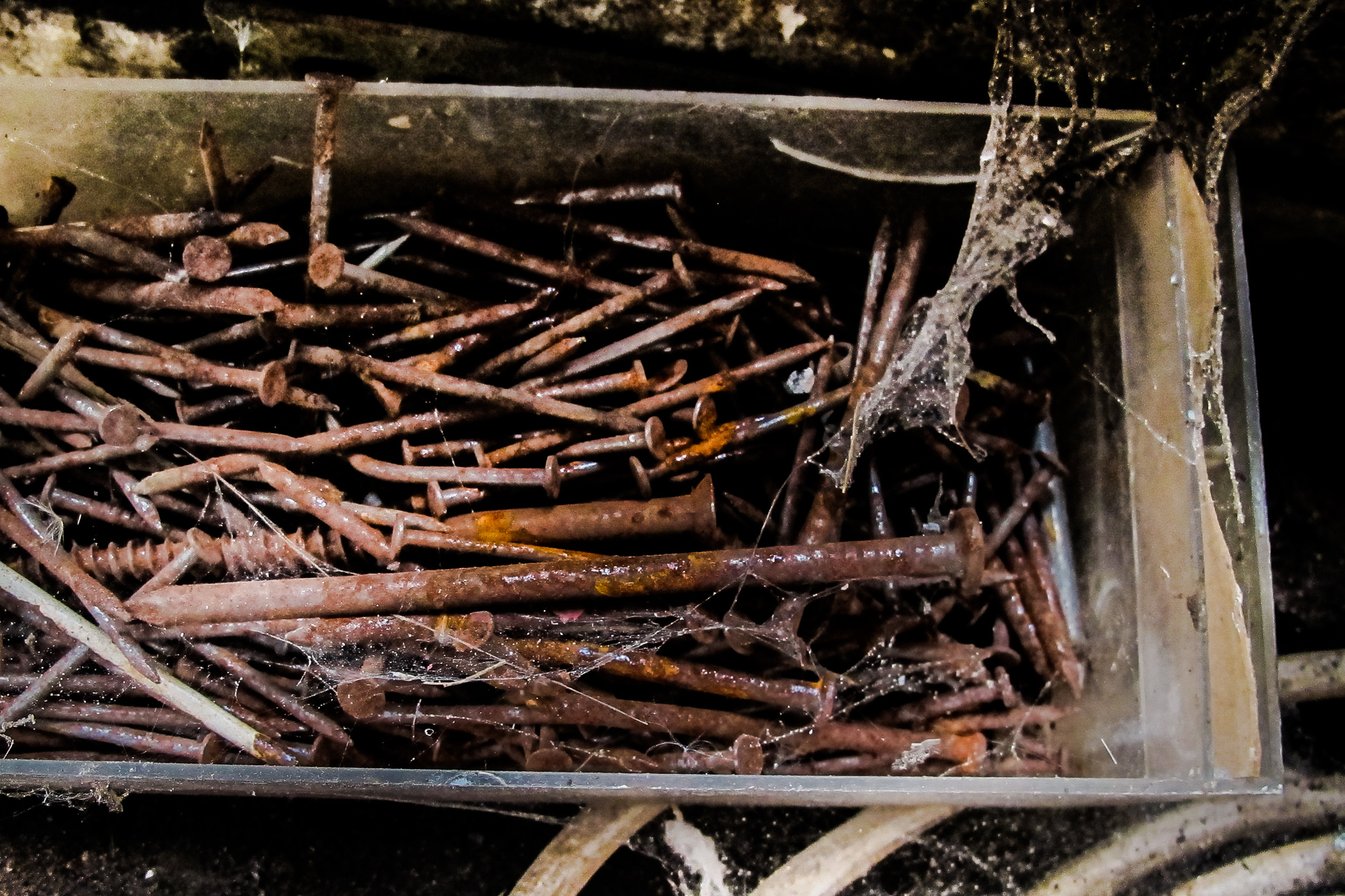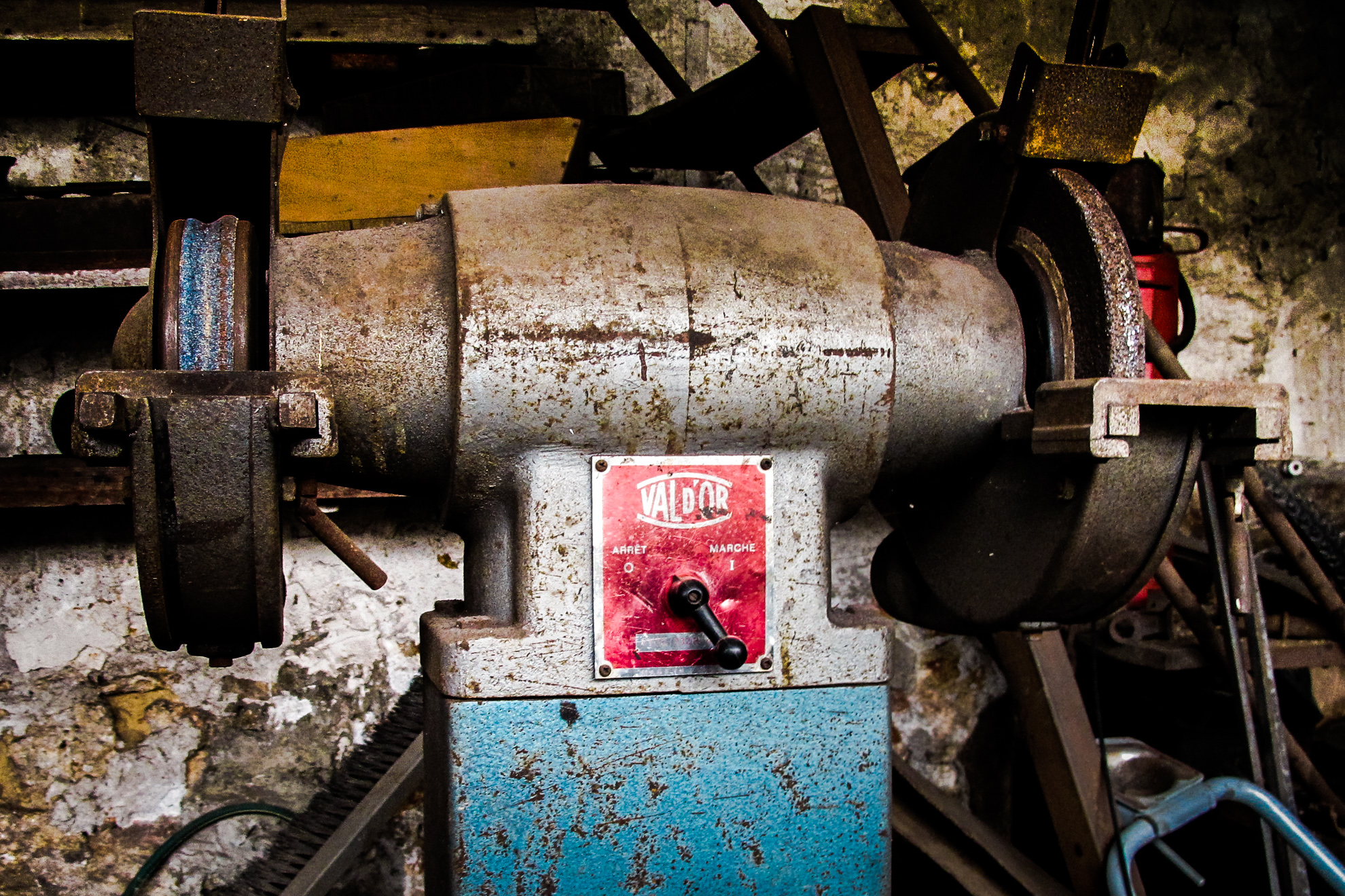 On cherche dans le disque dur, on aperçoit une composition lâche de signes qui accroche, on cherche à reconnaître, puis quelles photos avant, quelles photos après. Je ne pratique pas le taguage, il aurait fallu commencer plus tôt, alors je ne le fais pas. Pour savoir où est située une image, je regarde le jour, puis je remonte dans mon agenda sur Outlook, qui remonte jusqu’à 2003, avant il y a un trou, j’avais dû arrêter vers 1998 les agendas papier. Ce qui fait qu’il y a beaucoup de visages dans ces photos que je suis incapable de reconnaître, et pareil certains lieux. C’est aussi d’avoir souvent l’appareil sur moi, dès cette époque, mais de ne l’utiliser que par bouffée, rien pendant des heures et puis là 20 photos d’un petit coin de 6 mètres carrés. J’ai fini par retrouver où c’était et pourquoi j’étais là. Je m’en souviens parce que, ces photos, je les vois. Ça n’existait pas, en moi, en tant que souvenir, tant que les photos n’y étaient pas. Si vous êtes familier de mon site et que vous me dites où c’était (je pourrais faire liste d’au moins 5 personnes qui pourraient, et nota : non, ce n’est pas Damvix photographié récemment), je vous envoie un bouquin de la rentrée de septembre, en avant-première ! Reste qu’il y a toujours la même étrangeté, à ouvrir de tels lieux, qu’on semble tout y reconnaître, avoir tout touché, de toujours... Ou bien parce qu’on est soi-même ruine ou vestige comme ce lieu même, maintenant volatilisé ? Si je voulais demain retourner faire les mêmes images avec mon GH5, travailler mieux ce toucher que métal, pierre, rouille, pneu peuvent évoquer sur une image, je ne le pourrais pas. Le plus bizarre (mais je faisais souvent ça avec ce petit Canon G12), c’est d’avoir tout photographié au carré : prendre une tranche d’image en 3 x 2, et régler les surfaces en fonction d’un cadre qui n’aura existé que sur l’ordinateur au montage, est-ce que ça aussi change la nature de l’image ?