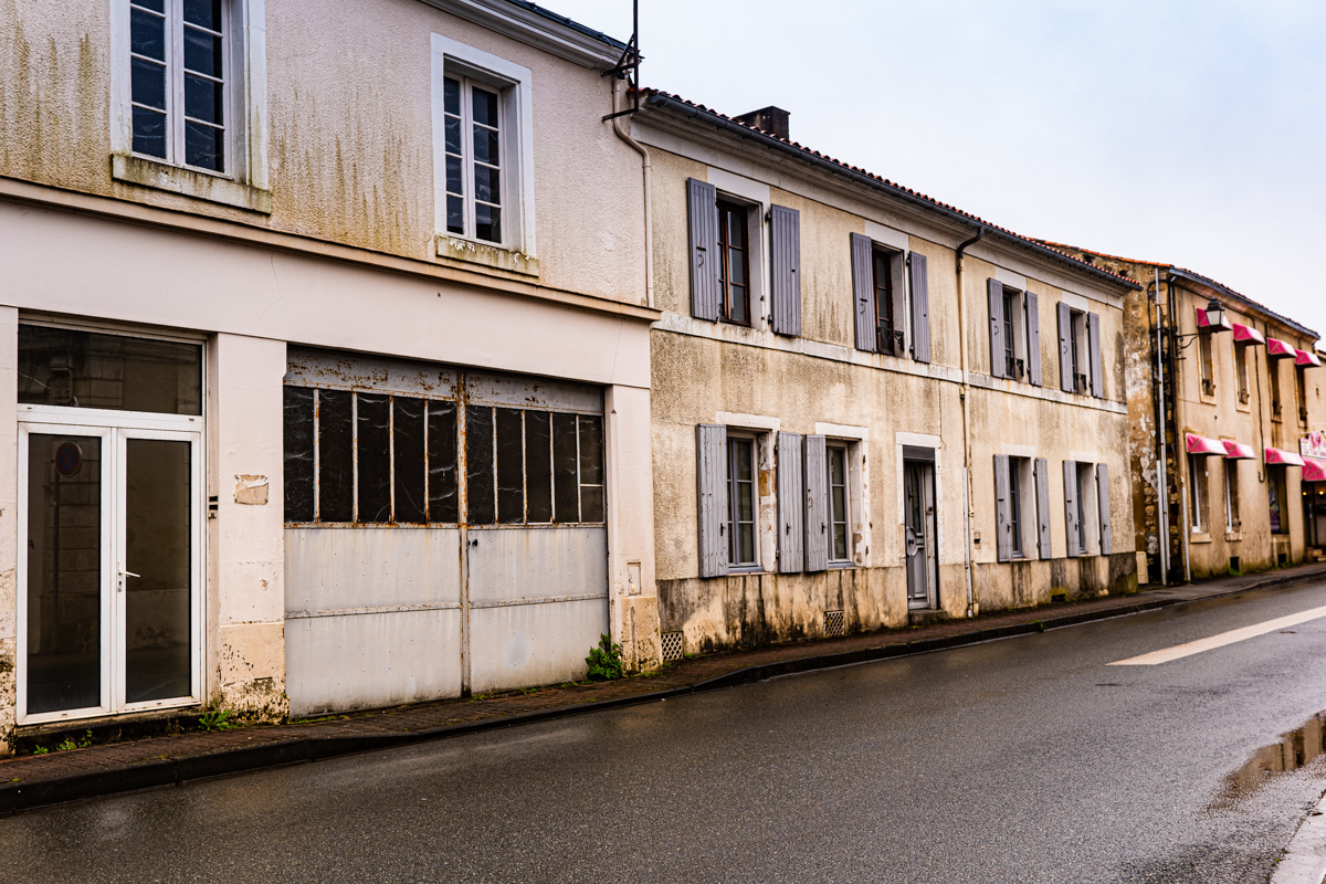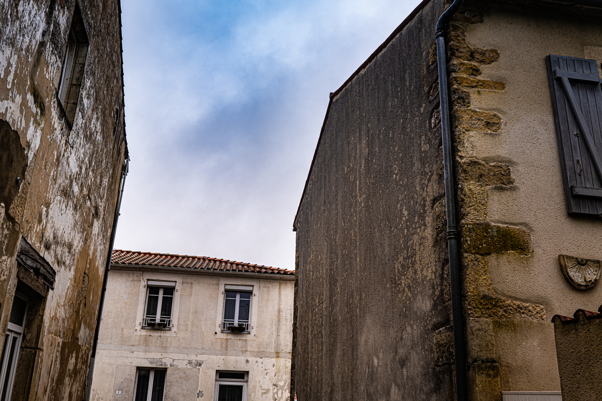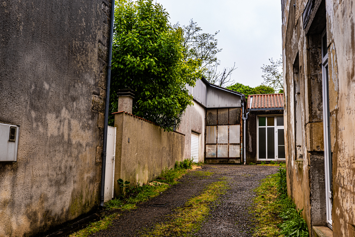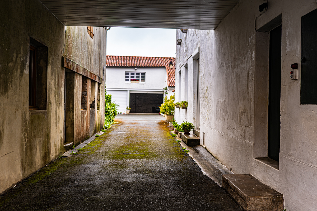 Éternel pèlerinage du même. Ce qu’on photographie existait tel quel encore en 1964, et c’est juste délaissé. Le temps gris et la pluie n’ajoutent rien à l’affaire. Et qu’évidemment on n’a pas le droit ni de sonner, ni d’entrer. Seulement, c’est en grande partie resté tel : c’est pour cela qu’on photographie. N’a pas été repeint. L’ancien bistrot restaurant d’à côté, démoli, le haut mur qui protégeait ma cour d’école primaire, démoli. La Boucarde, transformée. La maison d’enfance, bricolée à ne plus la reconnaître (sinon la glycine). Restent ces maisons basses, reste l’écart. Le délaissé du monde. Tu te heurtes à ces six décennies depuis la porte refermée, l’ensemble vendu ? Toi aussi, en toi, les mêmes décennies. Alors, ce que tu photographies, dans ce pèlerinage du même, c’est le même décrépi qui te définit ? Quand même le mot « passage ». On appelait ça « le passage ». Ça reste « le passage ». Si c’est le passage, une chance encore. Alors tu photographies.