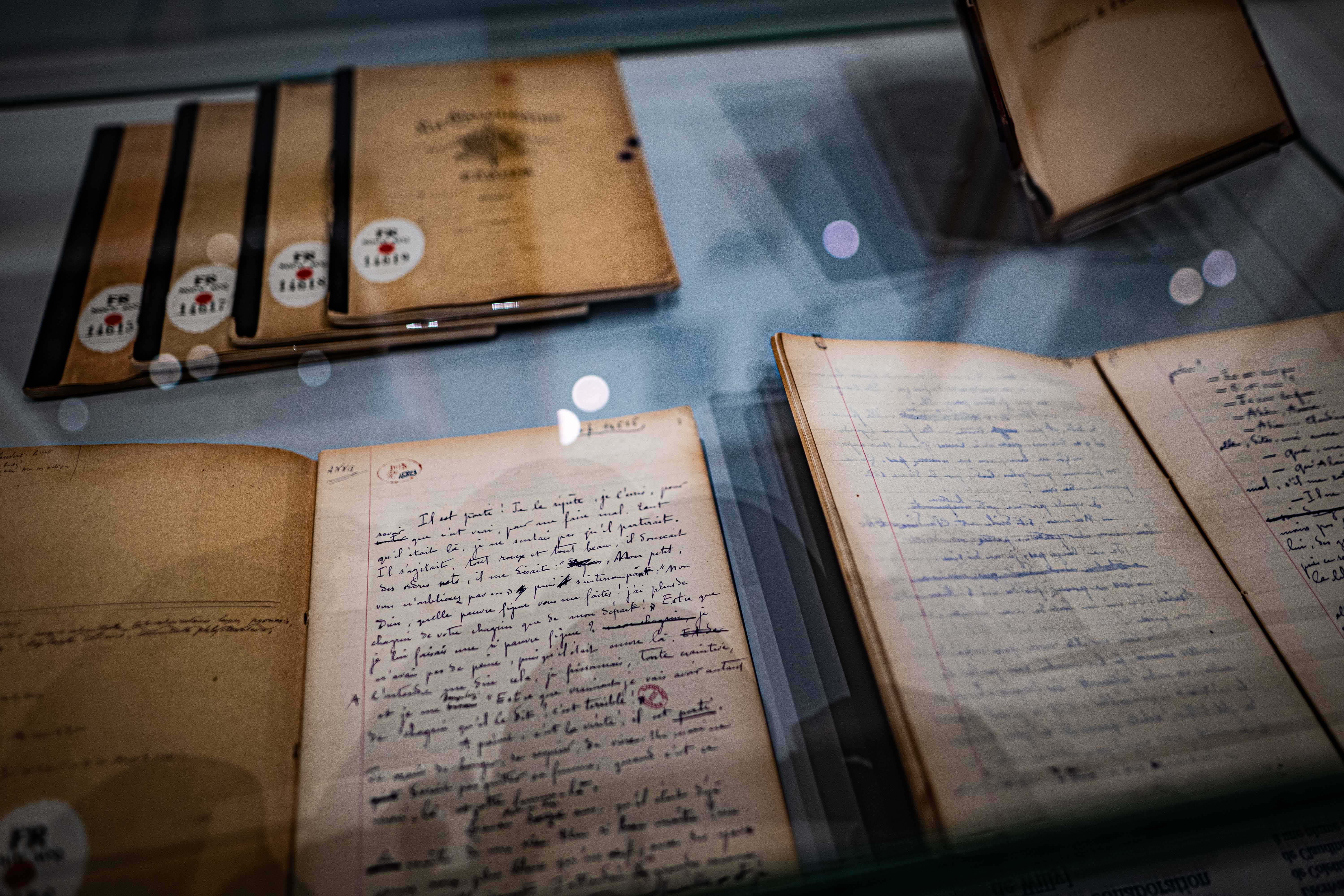Non, quand on se confronte à une telle révision d’une période littéraire qu’on vous a inculquée par d’autres autoroutes, et qui dévoile soudain, hors les questions biographiques, ou la dette qu’on a à cette haute et obstinée travailleuse des lettres, précisément un rapport à la littérature (dès sa mise en oeuvre qui s’appelle l’écriture) une construction hors et malgré le dominant. Avec le corps aussi, depuis la scène et le cabaret, avec la confrontation rémunérée aux compte rendus de tribunaux, même Landru, et cette liberté de ton qui ne vient que parce que les cahiers dansent, respect. Sa voix en 1950, aussi, parlant travail, outils, plan : écouté deux fois en intégral. La BNF a le savoir de ces expos, leur rigueur, et si on photographie, ce n’est pas pour faire mémoire — elle est dans les livres, et il y a une librairie bien fournie juste dans la galerie d’accès, mais pour la présentation quasi humble qu’il fallait à ce geste collectif de remise à niveau. Non pas socialement ou pour je ne sais quelles valeurs littéraires, on n’en rien à fiche, mais ce que ça redéplace à l’intérieur de soi-même, aux mêmes jours, aux mêmes dates. Maintenant lire.