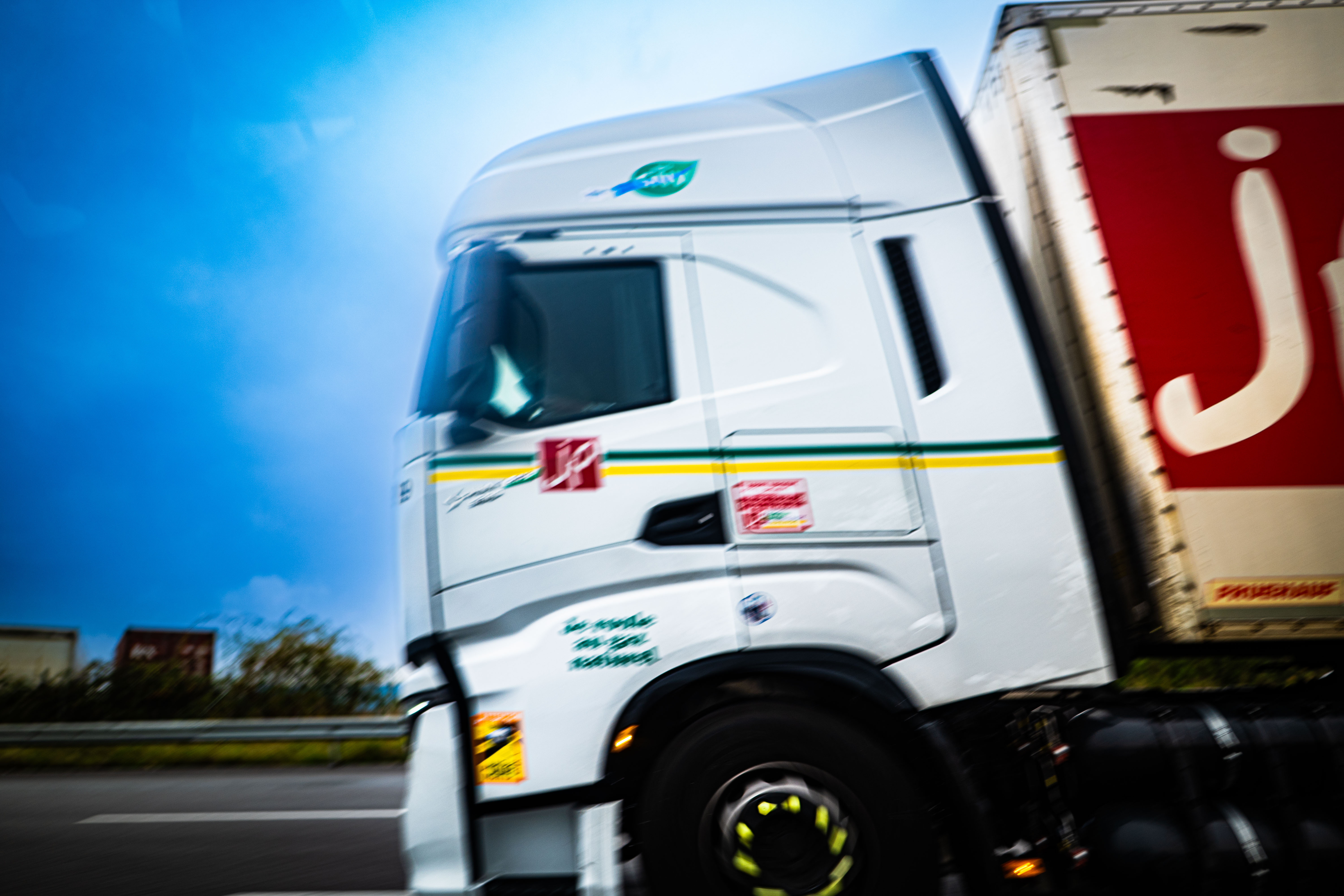 Il y a pas mal déjà de camions sur autoroutes, à force d’ancienneté, dans ce journal images. Les premières séries, c’était dans le trajet du matin en bus Orléans Express, de Québec à Montréal, l’année 2009-2010 : le bus allait un peu plus vite que les camions, quand on arrivait à hauteur de la cabine, je tirais discrètement le portrait du chauffeur. Ce matin, la chance d’être assis à l’arrière-droite, et la route forcément un peu embrumé quand tu ne conduis pas. On doublait les camions, et malgré la vitre teintée de la T-Cross, les déformations, le focus manuel, tenter d’attraper les camions de profil. Parfois aussi leur silhouette, aux chauffeurs. Ça a réussi une fois sur trois ou quatre, mais sur deux heures tu as le temps d’en accumuler pas mal, en tout cas ces trente. C’est chez moi ici, alors bienvenue à toutes et tous, mais si c’est pas votre truc, on ne vous en voudra pas !