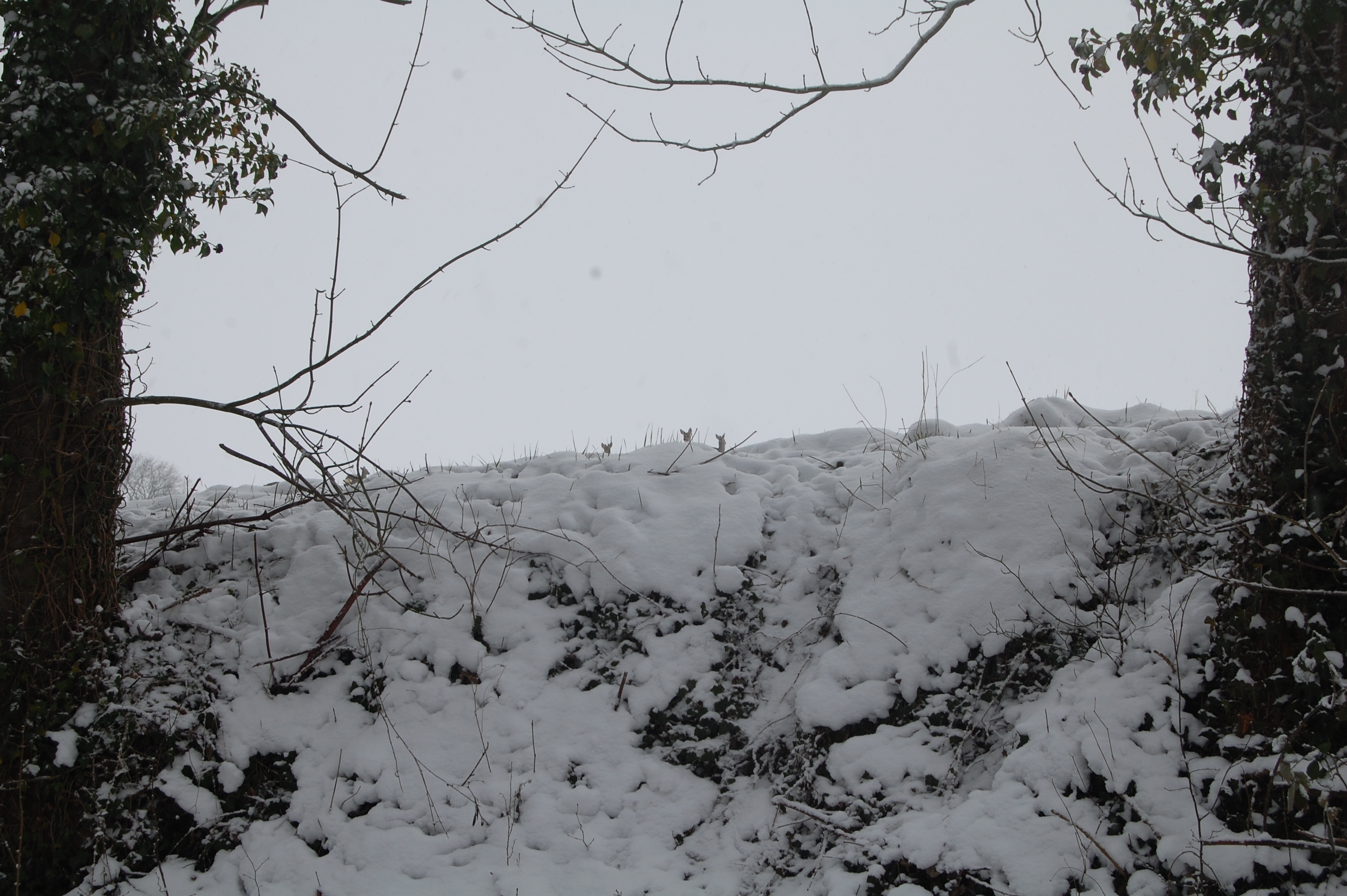 Au moment de la neige, je fais deux longues promenades dans la campagne, derrière le lotissement où a été construite dans les années 1950 la maison de mes parents -– je laisse à d’autres le malin plaisir de brocarder l’inélégance des lotissements. La deuxième promenade est la plus longue et me mène jusqu’à la gare de Lesquielles-Saint-Germain que je contourne pour revenir par chez Godet -– là où s’élevait avant la 1ère Guerre mondiale le château de Robbé. Je vois un troupeau de chevreuils dans la neige. Ce sont parmi les dernières photos que je prends –- que je prendrai. Ma mère s’inquiète que je ne revienne pas et téléphone aux voisins pour dire son inquiétude. Pour ma part, je suis cette marche. Je n’ai pas pris de téléphone. Il y a déjà assez neigé pour que la campagne soit entièrement blanche. On peut croire que c’est le nouveau chemin qu’a pris le monde, avec acharnement et obstination. J’ai sans doute chaussé les bottes de mon père mort. Il y a ce monde que je connais, puisque c’est celui de mon enfance. C’est celui qui existe depuis mon enfance et qui dure jusqu’à maintenant et que je peux retrouver, comme une pièce de monnaie qu’on tâterait des doigts dans la poche d’un vieux paletot, avec cette assurance qu’a l’enfant, l’assurance et la frayeur qu’a l’enfant qui joue avec un adulte à « coucou ! Beuh ! », se cachant les yeux et le visage derrière les mains et s’assurant à chaque fois que le monde et ses habitants familiers sont bien là et n’ont pas disparu, tout à fait –- le château déserté, les pièces que l’on parcourt et qui se révèlent l’une après l’autre, vide. Ce monde, donc, cette campagne : l’Oise qui s’écoule, ses méandres, les prairies autour, les pâturages et quelques collines, boisées, qui délimitent la vallée. Saules, noisetiers, les quelques essences qui constituent les haies. Ce paysage familier, là, cependant, pour un temps, passé à la neige, passé au blanc, identique mais pourtant métamorphosé, comme un héros et ses avatars, comme le Christ et sa transfiguration -– si on veut.