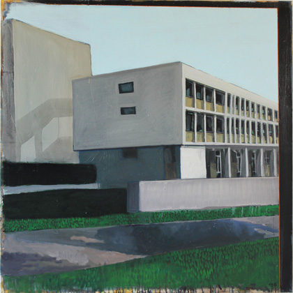 sur un paysage urbain peint à l’huile, pour un livre collectif sur Jérémy Liron