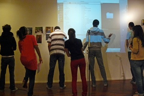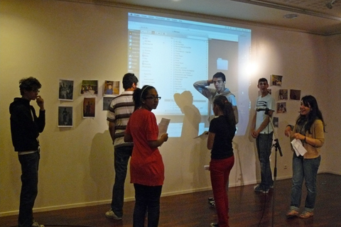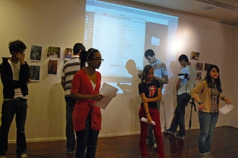 Photographies : répétitions pour une lecture publique, à la médiathèque de Bagnolet avec une classe de 2nde du lycée Eugène-Henaff, juin 2009.