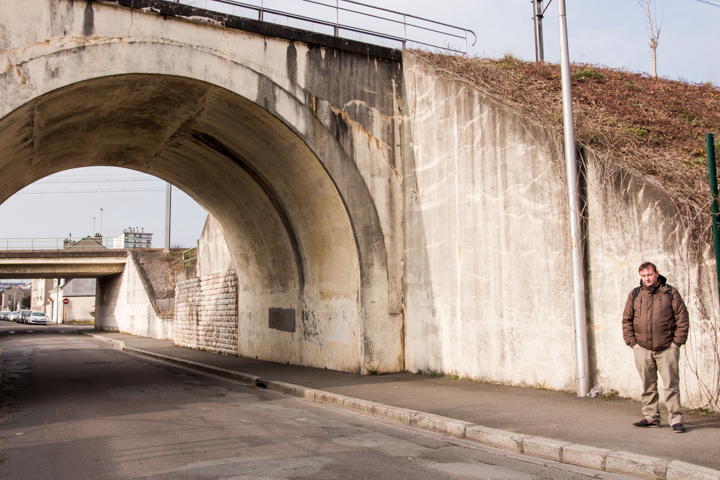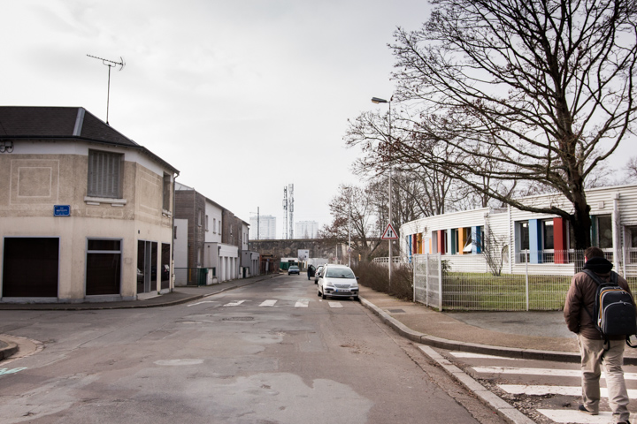 Avec Nicolas Simarik, nous choisissons comme point de départ cette frontière entre un quartier déjà rénové, le Sanitas, sur lequel il est plusieurs fois intervenu, et le quartier de la Rotonde, triangle enclavé dans ses lignes de chemin de fer, et sur lequel les travaux de rénovation commencent.