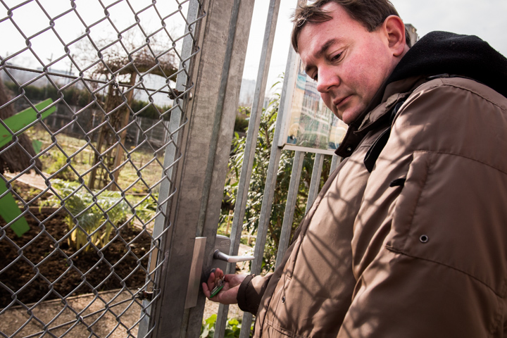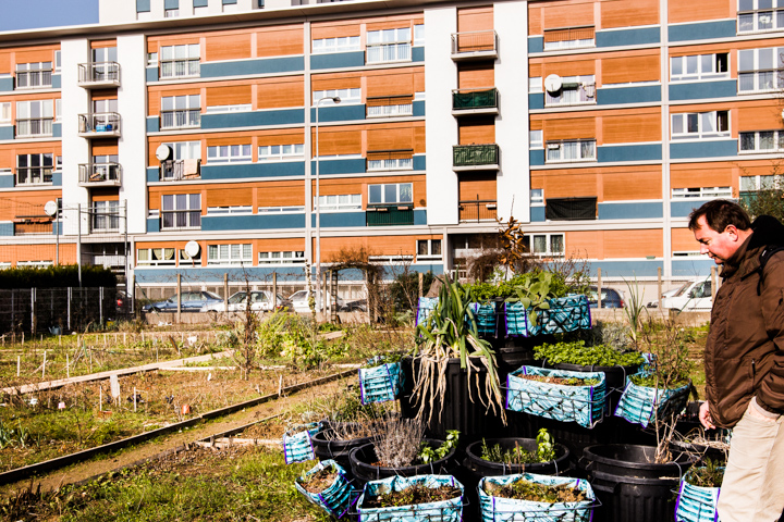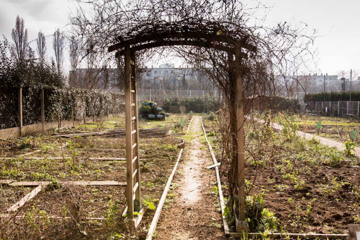 Entre bâtiments et voie de chemin de fer, dans un de ces espaces qui semblent dans une attente éternelle, Simarik sort une clé et ouvre un portail : dans ce grand « jardin partagé » – plus près des jardins urbains de Montréal que de cette belle tradition des jardins ouvriers à Saint-Pierre des Corps ou La Riche –, seize personnes entretiennent des parcelles. Certaines, avec bassin et pont, devenues comme des jardins d’agrément. L’outillage est mutualisé, comme certaines zones : « un jardin potager ce n’est pas seulement partager le terrain, c’est créer un partage de travail, aller vers un open-jardin, qu’est-ce qui se passe quand on n’est pas là, à qui on donne ce qu’on a fait pousser : on a vu des trucs pourrir... »