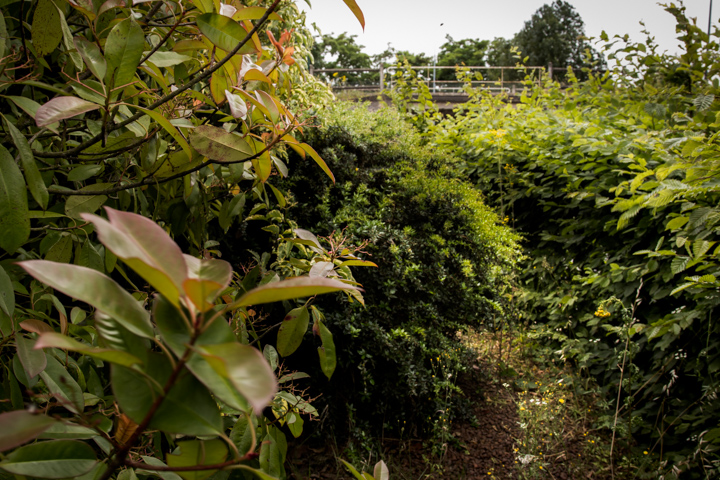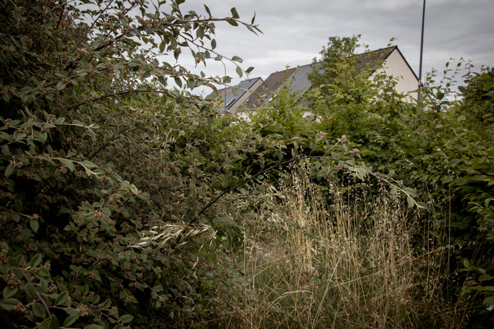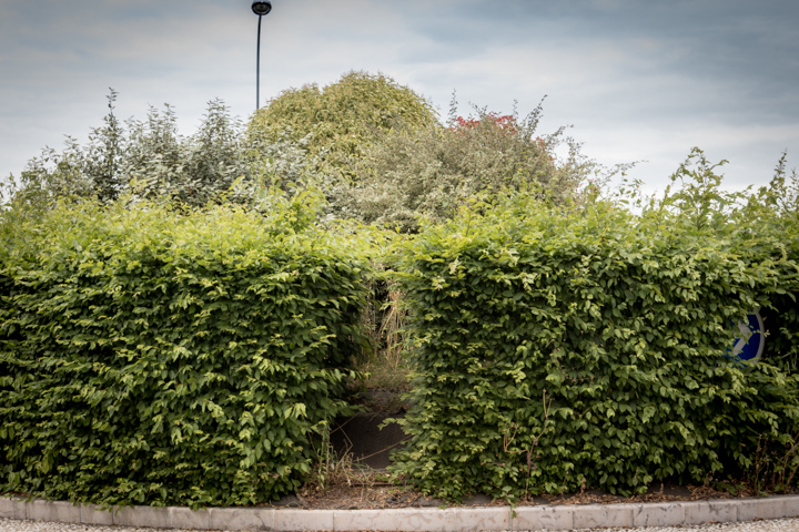 La première fois que je l’ai remarqué, il y a quelques semaines, il venait d’être taillé, et semblait un parfait cylindre, un tambour posé là, et bien fermé sur lui-même. Aujourd’hui, il était plus ébouriffé. Mais il n’y a qu’une seule entrée. Dedans, un petit chemin circulaire. Il paraît que pour disparaître c’était cela l’exercice : marcher trois fois dans un sens, marcher trois fois dans l’autre sens. Je l’ai fait. Puis je me suis arrêté avant le deuxième exercice, je ne souhaits pas disparaître (pas encore) et je ne donnerai pas les instructions pour la suite. Je voulais juste sentir ce à quoi il m’a été donné d’assister : le repli léger du sol sur lui-même, le hérissement des végétations, le chemin qui se referme. Oui, pour disparaître totalement il ne s’en fallait plus que de l’instruction suivante.