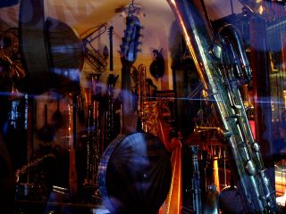 dans un magasin d'accordéons et batteries, plus quelques guitares