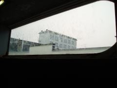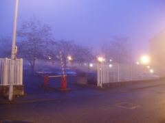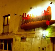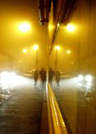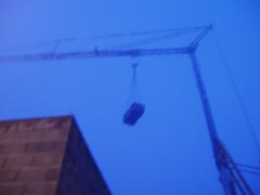 Pendant les derniers réglages, je fais un tour dans la rue, un brouillard jaune inonde tout l'espace, tombé en dix minutes. Une entrée de parking, une grue arrêtée pour la nuit, deviennent des géométries fantastiques. De la petite loge où je fais ma respiration, dernier aperçu sur la ville à travers la pluie qui s'y est mis. Dans l'entrée, Guénaël Boutouillet et Cathie Barreau, les piliers de la Maison Gueffier, veillent à l'organisation. Le brouillard, sur le trottoir, crée d'étranges effets avant l'entrée dans la salle. Un peu plus tôt, j'avais photographié la façade du café Havanna, le croyant abandonné: les lumières de la nuit me détrompent. Entre temps, j'ai parlé sans arrêt des Stones de 19h10 à 21h50 avec quelques extraits de musiques rares: l'ordinateur n'a pas planté, et je me suis à peu près repéré dans les menus DVD - pas facile, quand on le fait avec tous ces gens devant (et pas mal d'amis, Myriam Chevallier, Jacques Béchieau, plein d'autres).