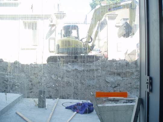 la ville s'engage sérieusement à nos côtés : on réhabilite la rue, qui deviendra semi piétonne, manière d'irriguer différemment tout ce vieux quartier avec les échoppes d'antiquaires et de bouquinistes - on a un peu de retard dans le programme : les travaux ont bien sûr entraîné des fouilles de sauvetage, les structures médiévales de la ville et de vieilles tombes - les fondations du bâtiment les préservent page 4 sur 15, cliquer sur l'image pour la suite |